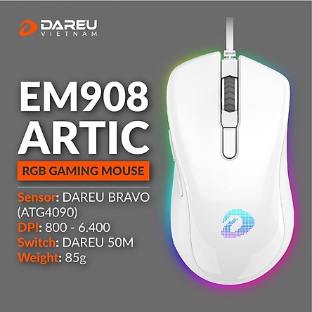 Giới thiệu CHUỘT GAMING DAREU EM908 LED RGB ĐEN / HỒNG / TRẮNG