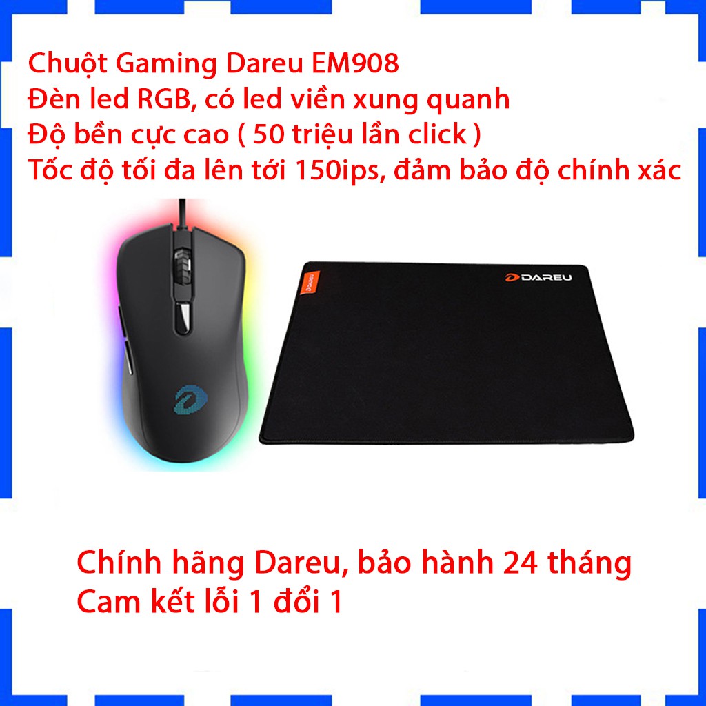 Máy tính & Laptop > Chuột & Bàn Phím > Chuột Máy Tính || Chuột Gaming Dareu EM908 - Led RGB - Có led viền - Bảo hành 24 thángCòn hàng