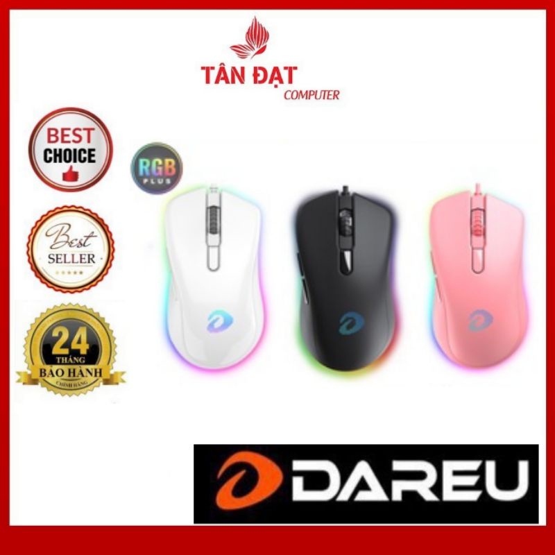 Máy tính & Laptop > Chuột & Bàn Phím > Chuột Máy Tính || Chuột Gaming DAREU EM908 Trắng Đen Hông (LED RGB, BRAVO sensor) -Chính Hãng - Mai Hoàng Mới 100%Còn hàng