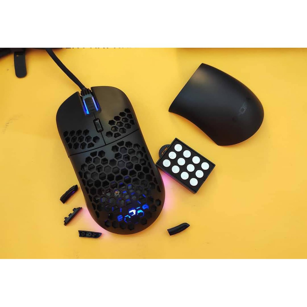 Chuột Gaming EDRA EM618 Led RGB chính hãng lỗ có dây Siêu Nhẹ 12400DPI Có tạ đi kèm cùng nút & vỏ để người dùng tùy biến
