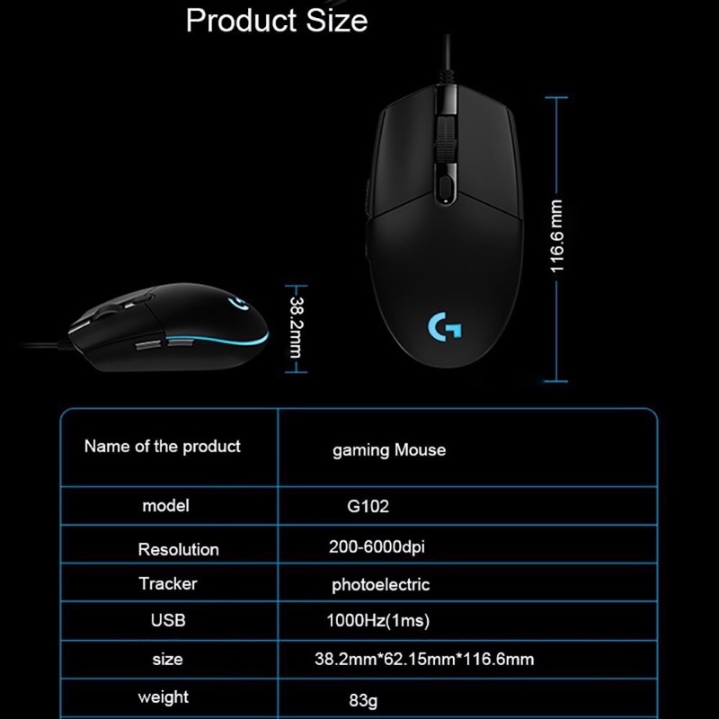 - Chuột game G102 có thông số kĩ thuật như sau: