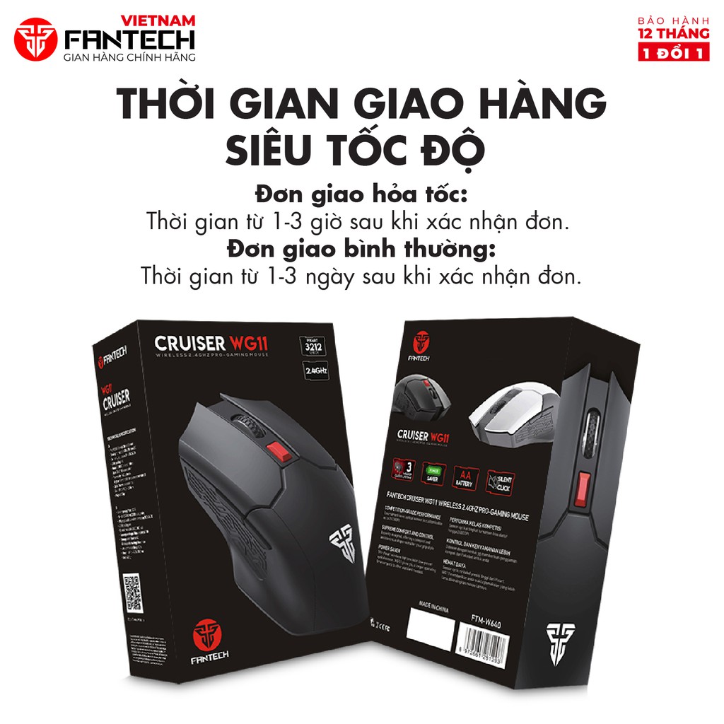 Chuột Gaming Không Dây Fantech WG11 CRUISER 2400DPI PIXART 3212 6 Phím Macro Dùng Pin AA - Hãng Phân Phối Chính ThứcTHỜI GIAN GIAO HÀNG SIÊU TỐC ĐỘ