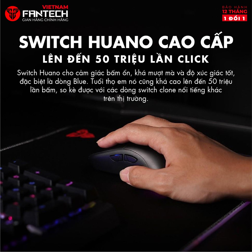 - Sử dụng Switch Huanno cao cấp cho tuổi thọ đạt đến 50 triệu lần click