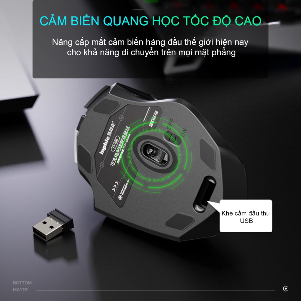 Chuột gaming không dây sạc pin Sidotech Inphic P6W cho game thủ chơi game chuyên nghiệp kết nối Wireless 2.4G