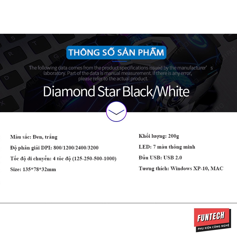 THÔNG TIN SẢN PHẨM : Chuột gaming máy tính có dây FUNTECH G9 PRO Led 7 màu