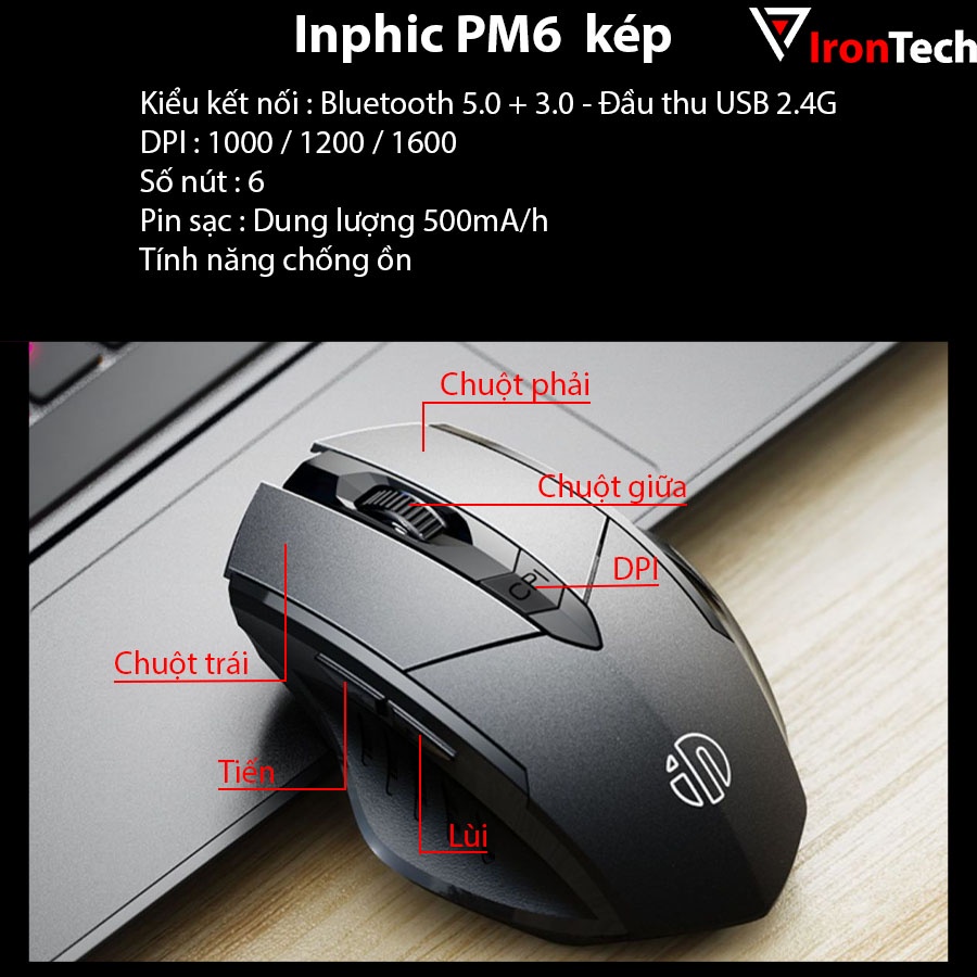 Chuột gaming KHÔNG DÂY Pin sạc INPHIC PM6