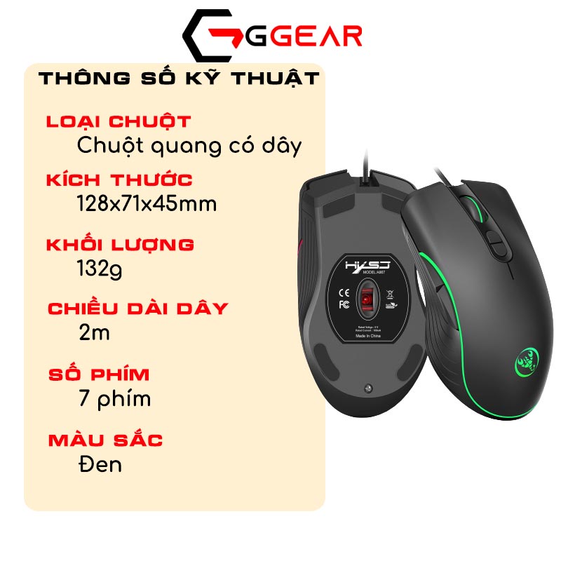 Giới thiệu Chuột gaming máy tính có dây GGear HXSJ A867 led RGB 6400dpi bền bỉ cho game thủ cho laptop PC