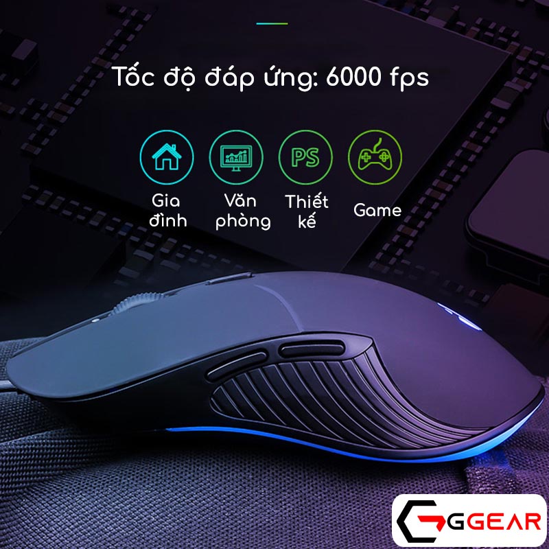 - Có 6 phím bấm : Chuột trái, chuột phải, con lăn, nút dpi, back, next