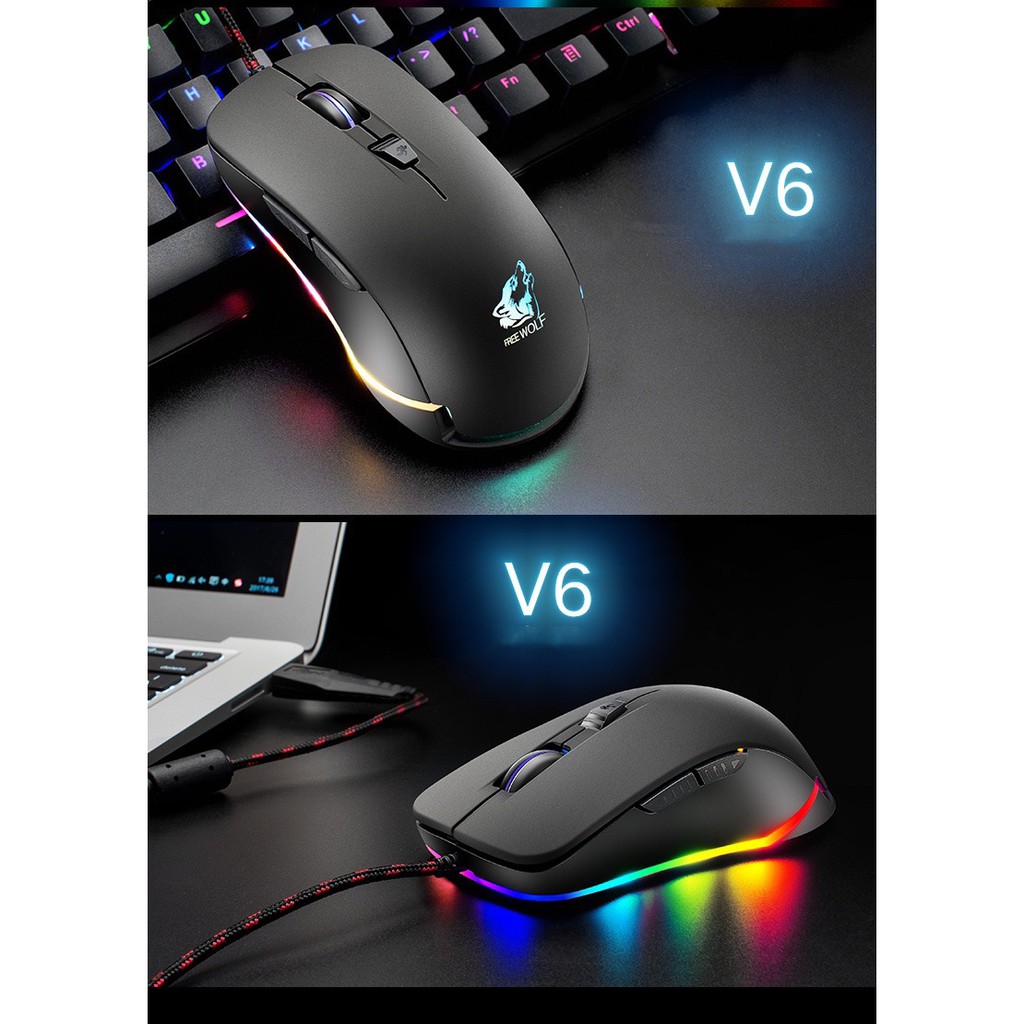 2. CHUỘT CHƠI GAME LED RGB FREE WOLF V6 Premium (Đen)
