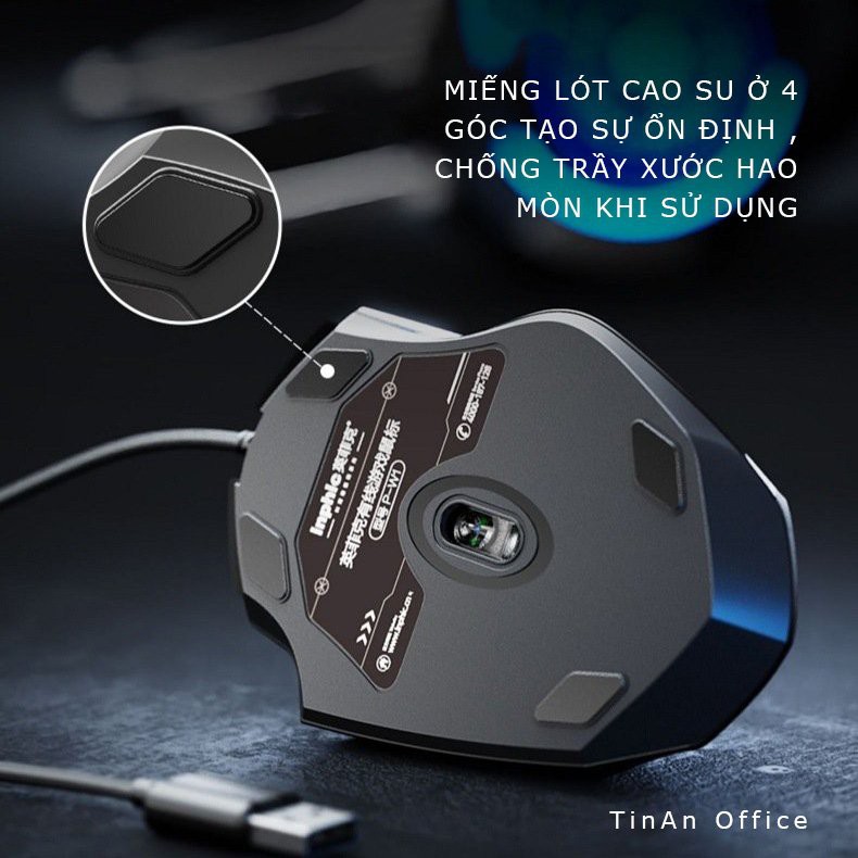 Chuột Inphic PW1 Có Dây Chống Ồn, LED RGB 4000DPI, Sử Dụng Chơi Game, Văn Phòng
