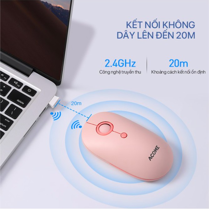 Chuột Không Dây ACOME AM300 2.4GHz Tĩnh Âm - BẢO HÀNH 12 THÁNG✔ Con lăn chuột nút tròn