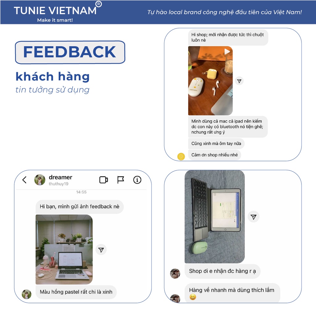 - Nếu bạn gặp vấn đề về sản phẩm, ý kiến góp ý hoặc cần hỗ trợ sử dụng sản phẩm hoặc hỗ trợ bảo hành, vui lòng nhắn tin cho Tunie hoặc liên hệ 0964 608 948 - Bộ phận Kỹ thuật của Tunie VietNam để chúng mình có cơ hội hỗ trợ bạn kịp thời và nhanh chóng nhất cũng như cải thiện những thiếu sót nhé!