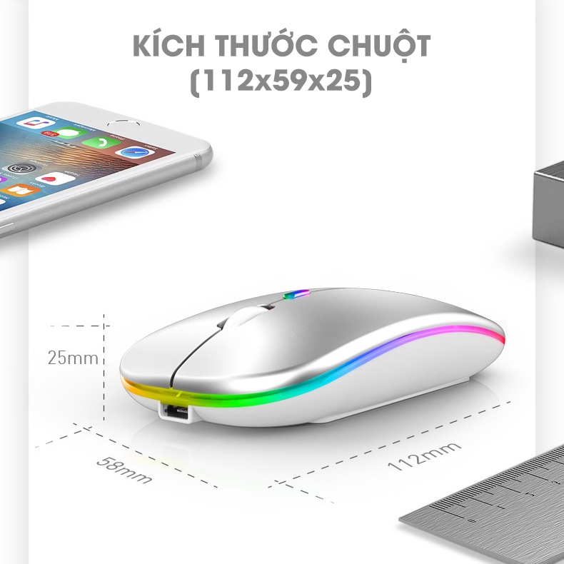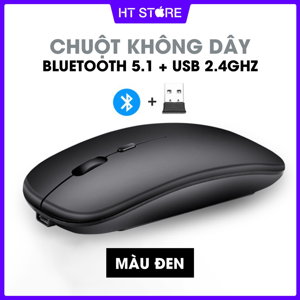 Chuột không dây Bluetooth 2.4Ghz tự sạc pin cao cấp 2 trong 1 chống ồn dùng cho Điện Thoại, Máy Tính, Laptop, Macbook