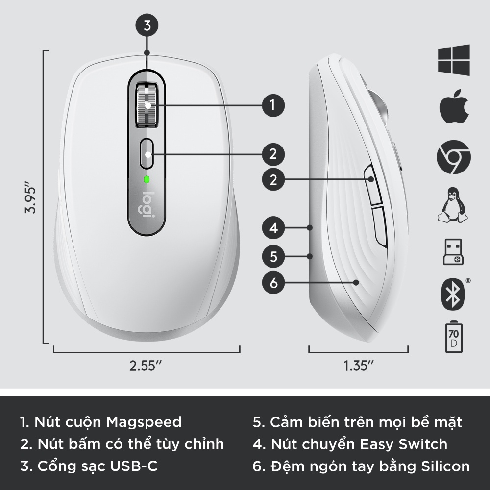 Chuột không dây bluetooth Logitech MX Anywhere 3 - Nhỏ gọn, sạc nhanh, có bản cho Mac