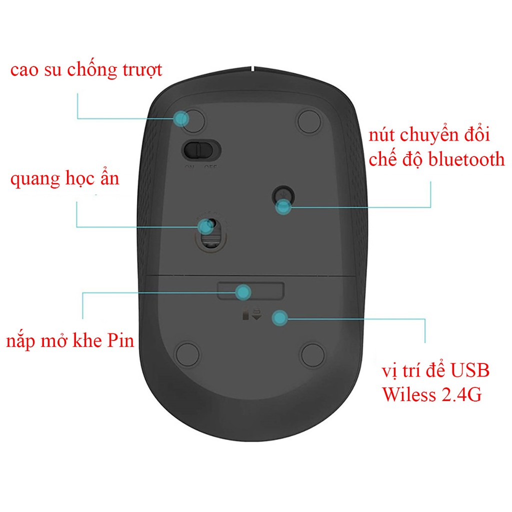 · Chuột không dây kết nối chuẩn Bluetooth và 2.4GHz. Với 3 chế độ chuyển đổi và kết nối đồng thời cho Blueooth 3.0, 4.0 và 2.4GHz