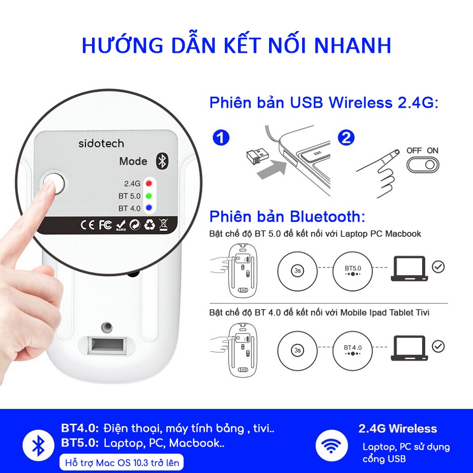 CHUỘT KHÔNG DÂY BLUETOOTH TỰ SẠC PIN SIDOTECH M1PƯU ĐIỂM NỔI BẬT CHUỘT KHÔNG DÂY BLUETOOTH SẠC PIN SIDOTECH M1P