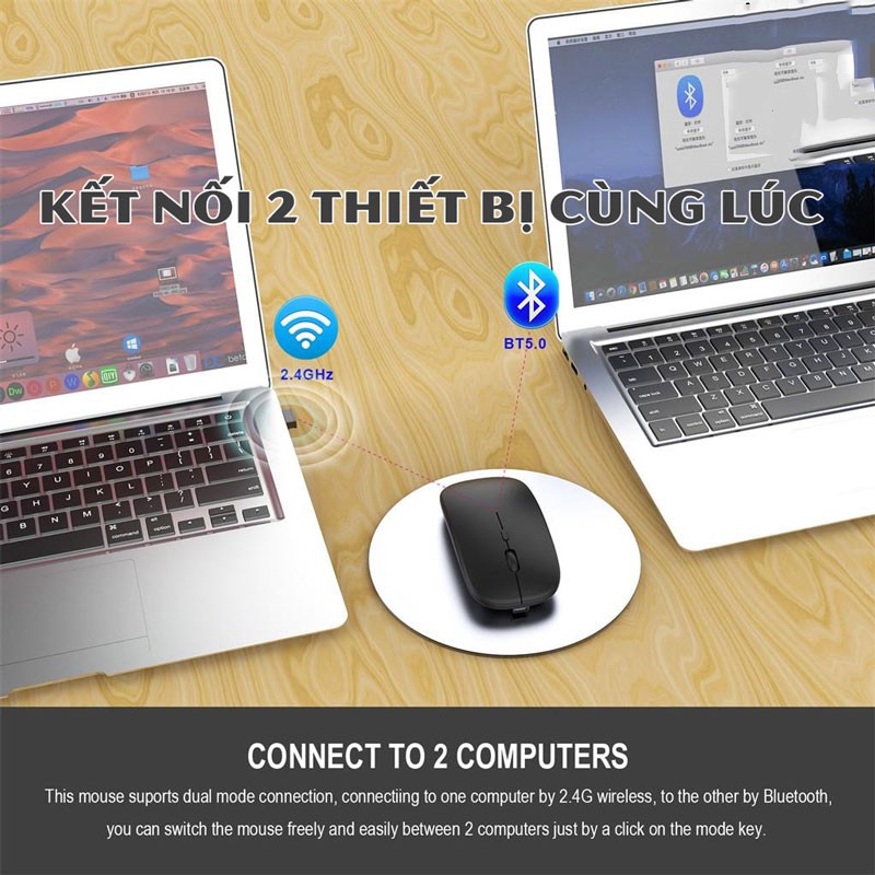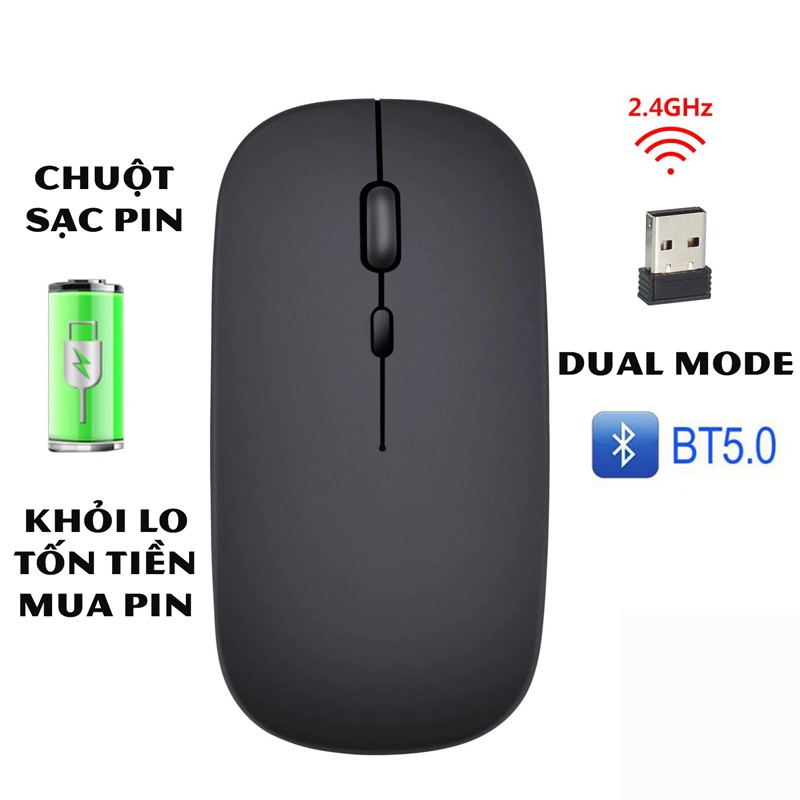 Máy tính & Laptop > Chuột & Bàn Phím > Chuột Máy Tính || Chuột Không Dây Bluetooth Và 2.4G Pin Sạc, Kiểu dáng Apple Slim, Kết nối Bluetooth và Wireless 2.4G được 2 thiết bịCòn hàng