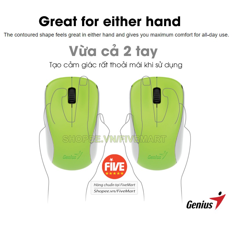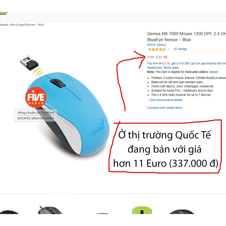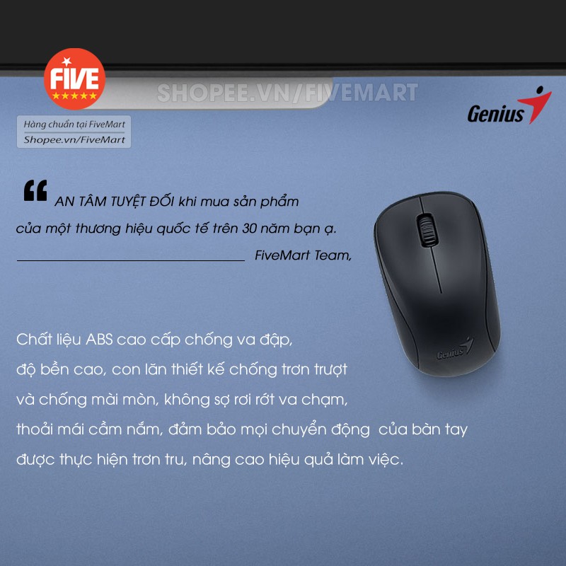 • Shop Fivemart là một shop được đánh giá rất cao trên hệ thống shopee thông qua đánh giá của khách hàng. Chúng tôi đã được vinh hạnh phục vụ cho hàng nghìn khách hàng trên cả nước. Bạn hãy tin tưởng chúng tôi và hãy mua chuột không dây Genius NX-7000 - dùng thử - cảm nhận bạn nhé.