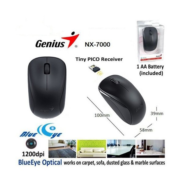 Chuột KHÔNG DÂY CAO CẤP Genius 7000, Chính Hãng Nguyên Tem, Công Nghệ BlueEye, Đa Dụng