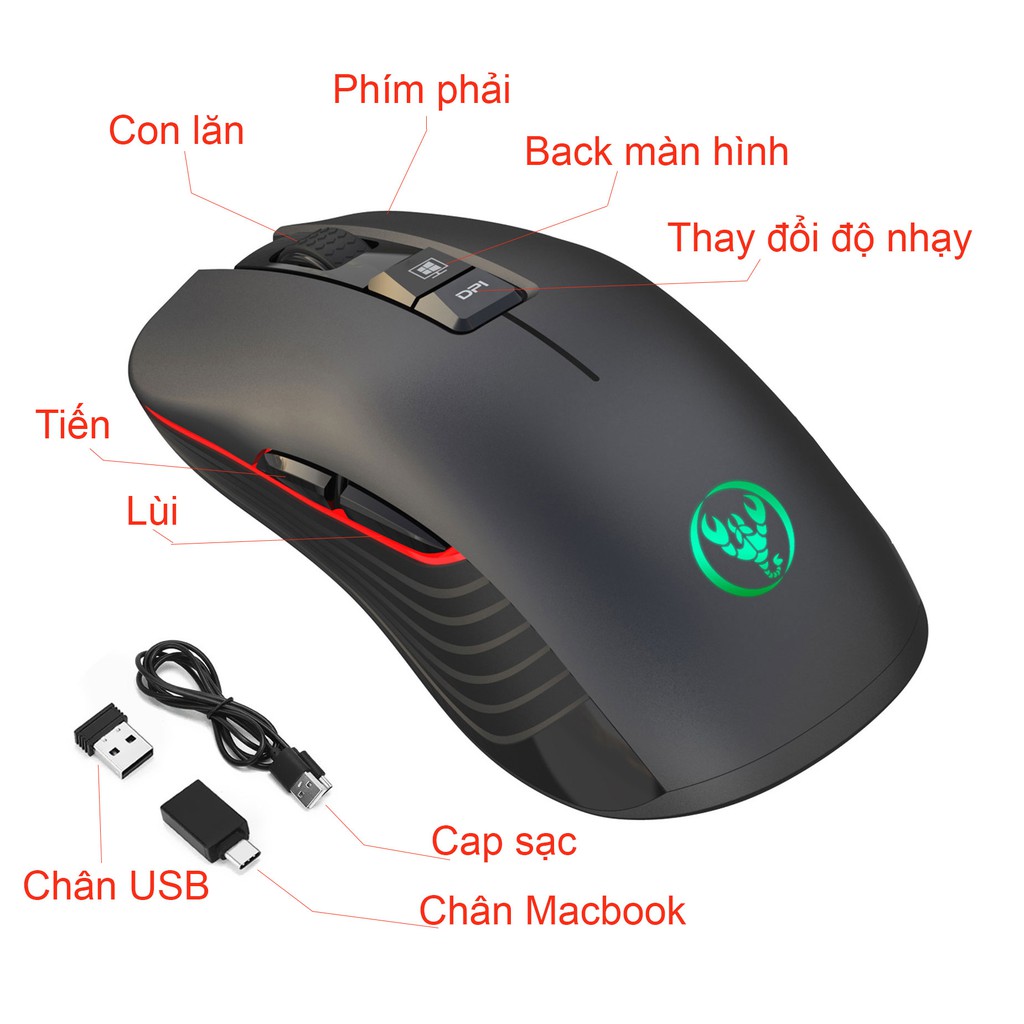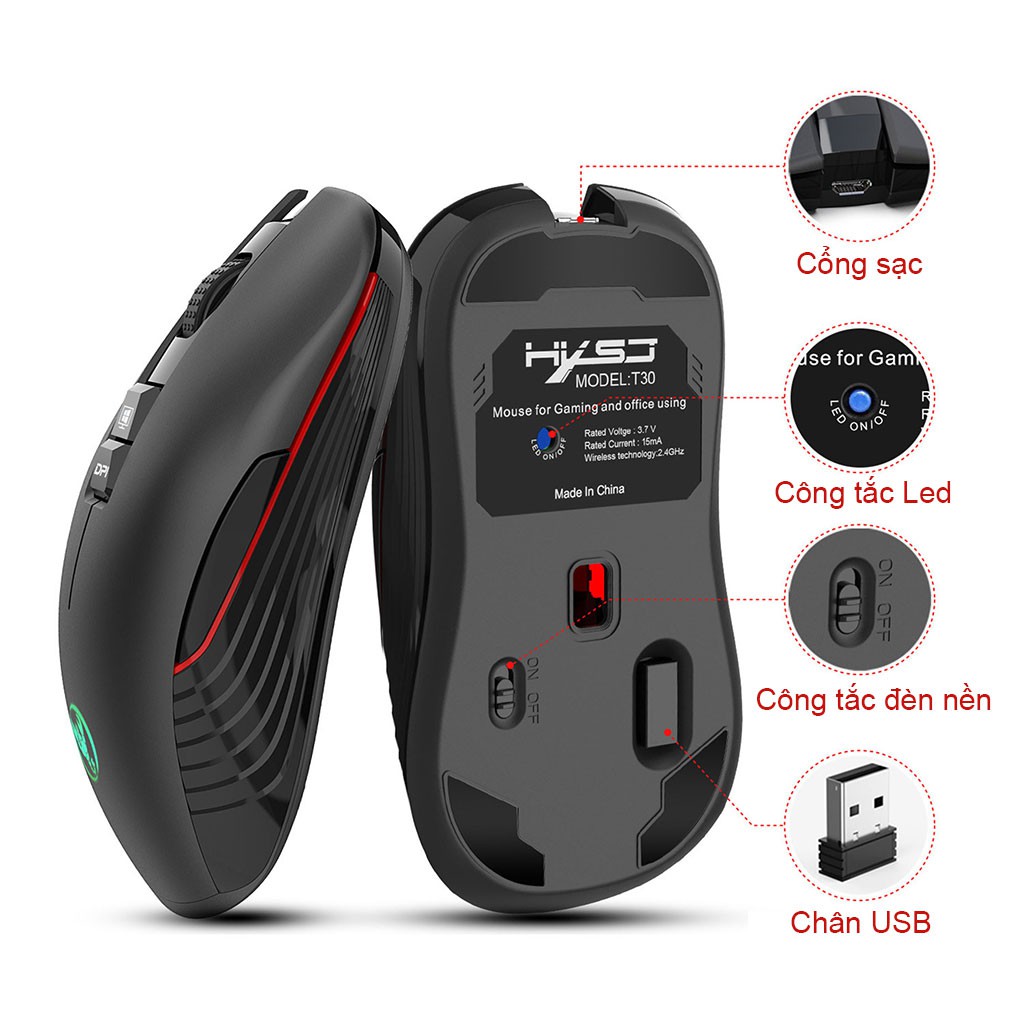 ✿ Thiết kế chuột Không Dây Sạc Điện HXSJ T30