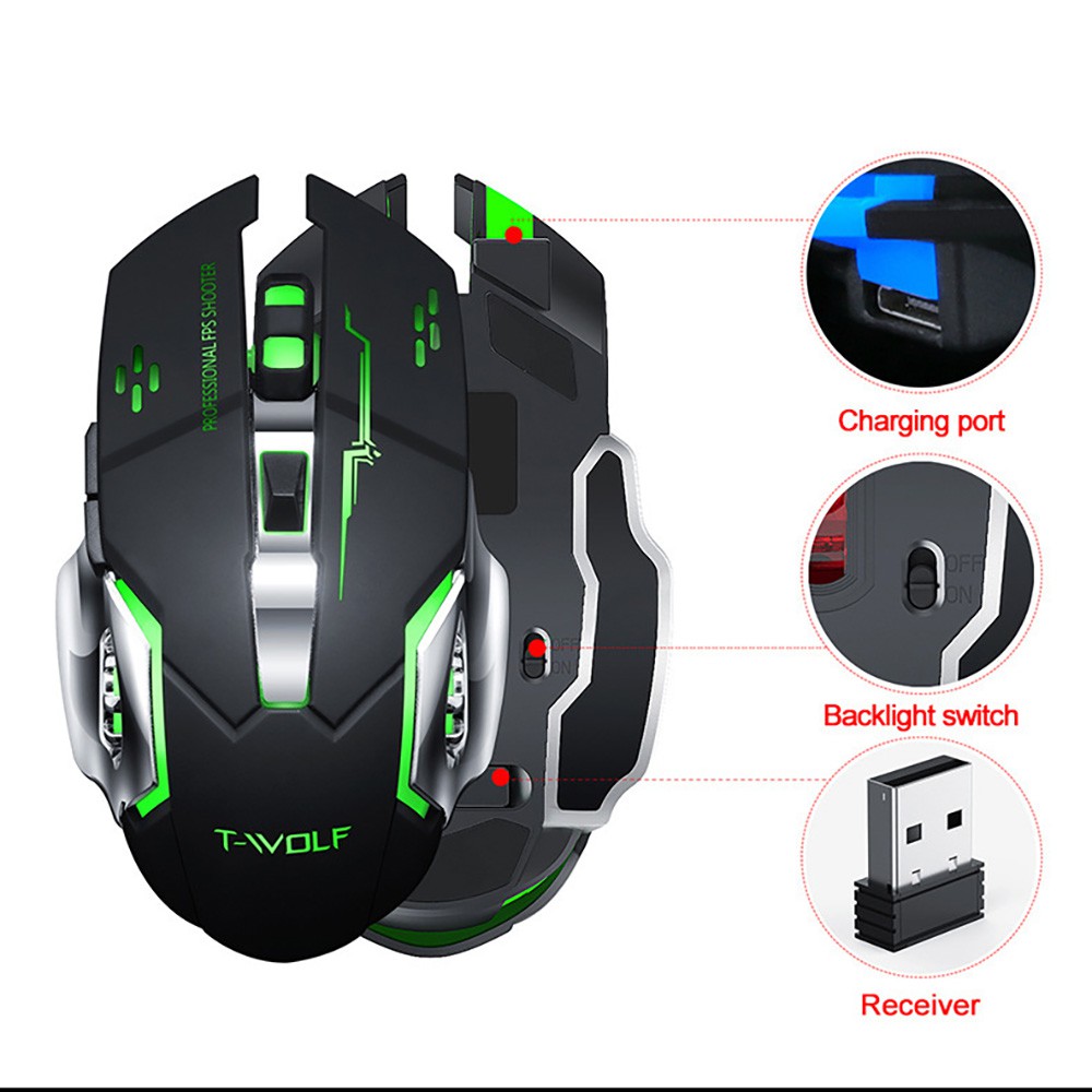 Máy tính & Laptop > Chuột & Bàn Phím > Chuột Máy Tính || Chuột Không Dây Chơi Game Sạc Pin Tích Điện TWolf Q13 Có Đèn LED Đổi MàuCòn hàng