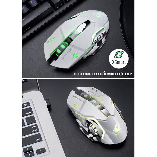 Chuột không dây chuyên GAME Wolf X8 PRO NÂNG CẤP Wireless 2.4GHz SIÊU NGẦU, Tự động đổi màu sắc