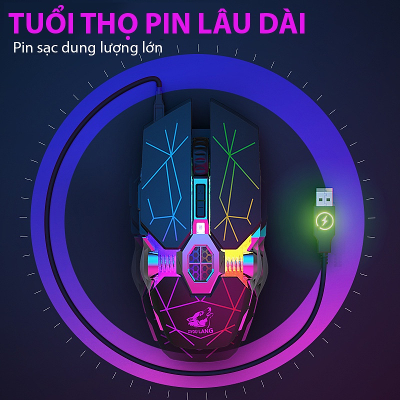 USB có thể sạc lại: chuột chơi game không dây, có thể vừa sạc vừa sạc, tiện lợi khi sử dụng.