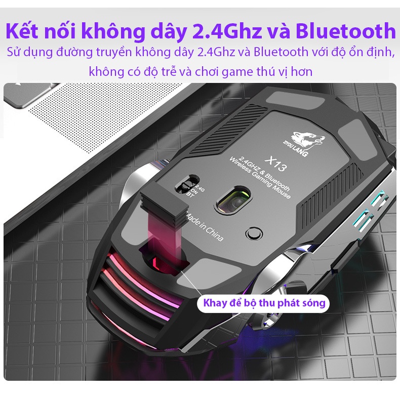 Đặc điểm sản phẩm: Chuột không dây Coputa chuột máy tính gaming Full LED RGB X13