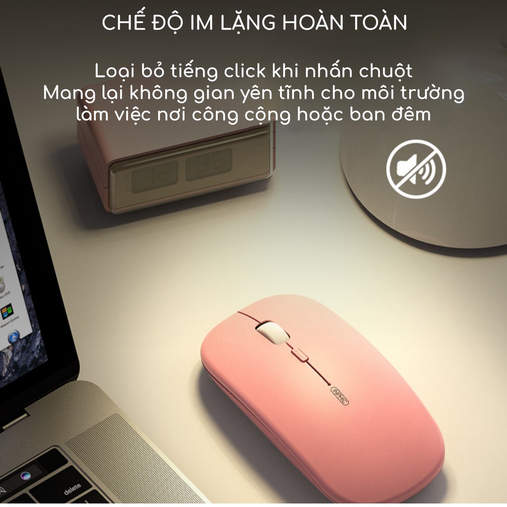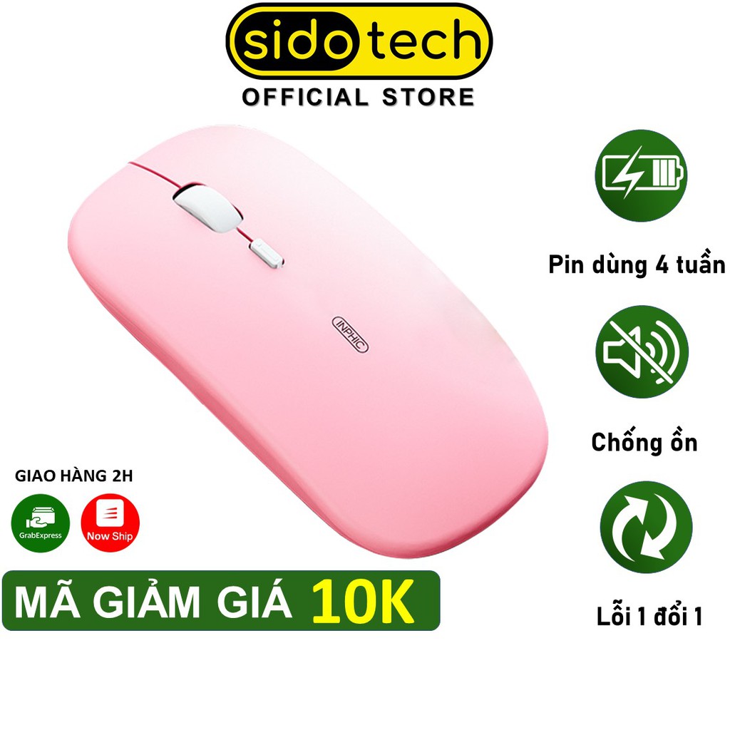 Máy tính & Laptop > Chuột & Bàn Phím > Chuột Máy Tính || Chuột không dây cute màu hồng sạc điện SIDOTECH Inphic M1P dòng silent pin sạc 1 lần dùng 4 tuần cho máy tính laptop pcCòn hàng