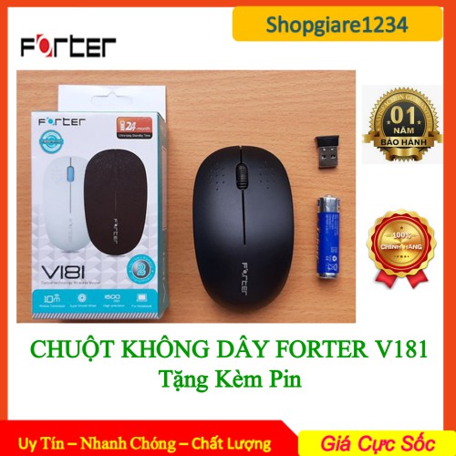 Chuột Không Dây FORTER V181 - Tặng Kèm Pin - Siêu Nhạy - Hàng Chính Hãng 100%, Full Box, BH 12 T