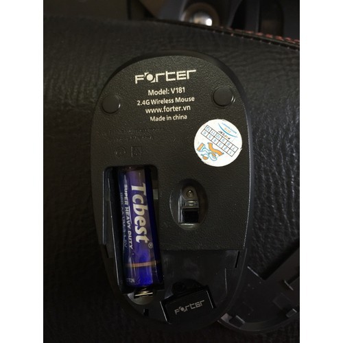 Chuột không dây Forter V181 màu đen sử dụng pin AA thông dụng. Công nghệ tiên tiến tự động tắt bật khi kết nối hoặc shutdown máy tính tiết kiệm tối đa năng lượng.