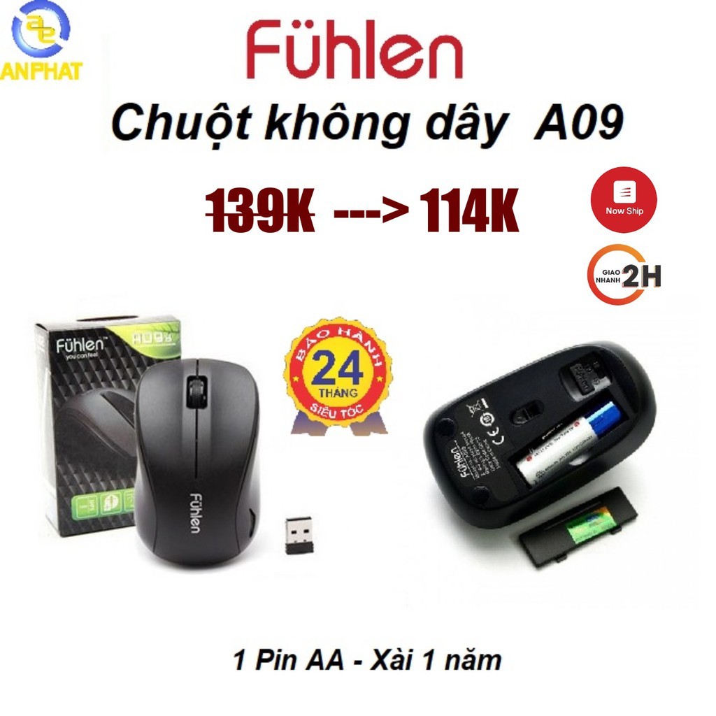 Máy tính & Laptop > Chuột & Bàn Phím > Chuột Máy Tính || Chuột không dây Fuhlen A09 - 1 pin AA dùng 1 năm - Chính hãng BH 24 thángCòn hàng