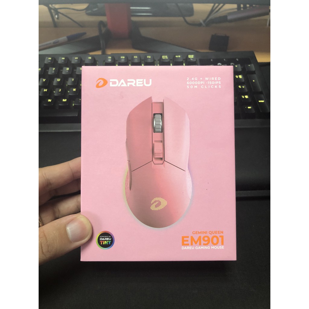 Máy tính & Laptop > Chuột & Bàn Phím > Chuột Máy Tính || [Mã 273ELHA100K0 hoàn 7% đơn 500K] Chuột không dây Gaming DAREU EM901 RGB - PINK (BRAVO ATG4090 sensor)Còn hàng
