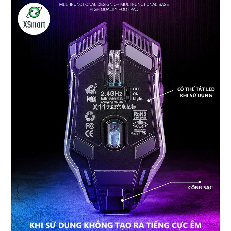 Chuột chuyên game không dây FREEE Wolf X11 Wireless 2.4GHz - Led 7 màu tự chuyển