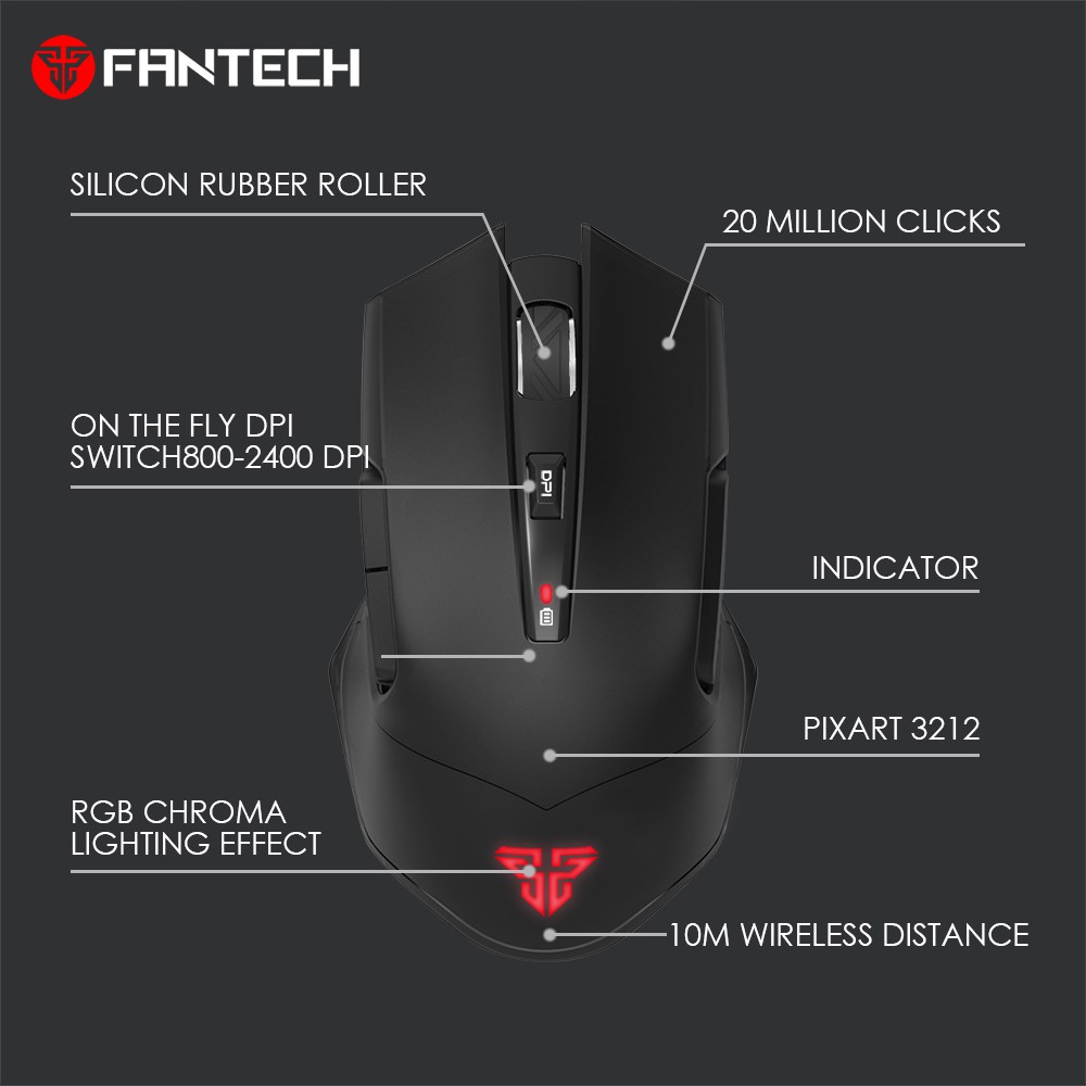 Chuột Không Dây Gaming LED RGB 2400DPI PiXart 3212 cho Game Thủ FANTECH WGC1 - Hãng phân phối chính thức