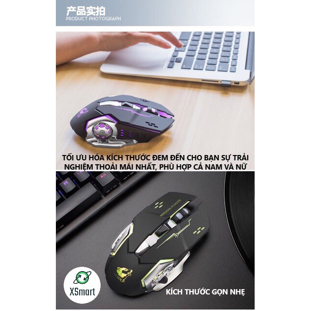 Máy tính & Laptop > Chuột & Bàn Phím > Chuột Máy Tính || Chuột Không Dây Gaming Wolf X8 LED 7 Màu RGB, Pin Có Thể Sạc Dùng Cực Lâu, Chuột Chơi Game Không DâyCòn hàng