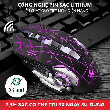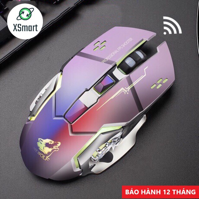 Chuột Không Dây Gaming Wolf X8 LED 7 Màu RGB, Pin Có Thể Sạc Dùng Cực Lâu, Chuột Chơi Game Không Dây