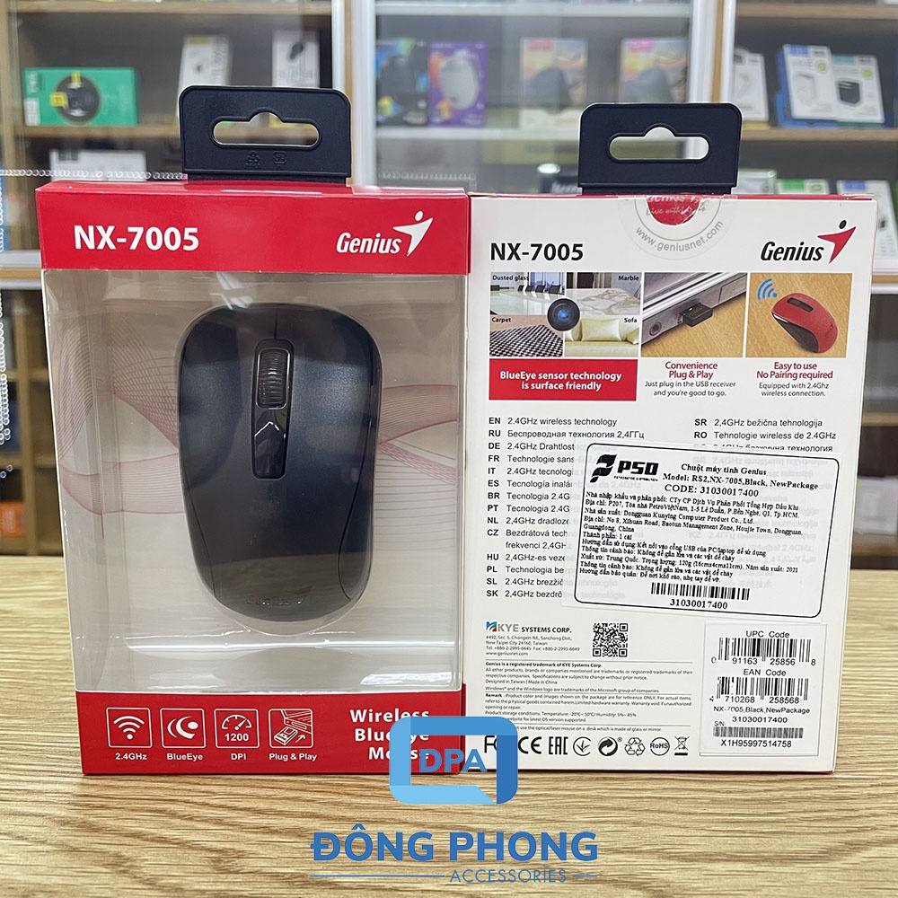 Sản phẩm hiện đang được phân phối tại ĐÔNG PHONG ACCESSORIES. Bên cạnh Chuột Không Dây Genius NX 7000 / NX 7005 Chính Hãng tuyệt vời trên, chúng tôi còn cung ứng rất nhiều phụ kiện chính hãng khác.