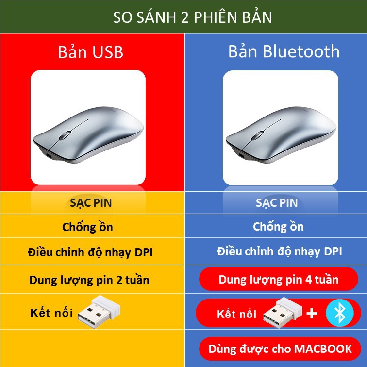 ✔ Ngoài ra chuột có thể sạc lại pin đảm bảo tiết kiệm, bảo về môi trường.