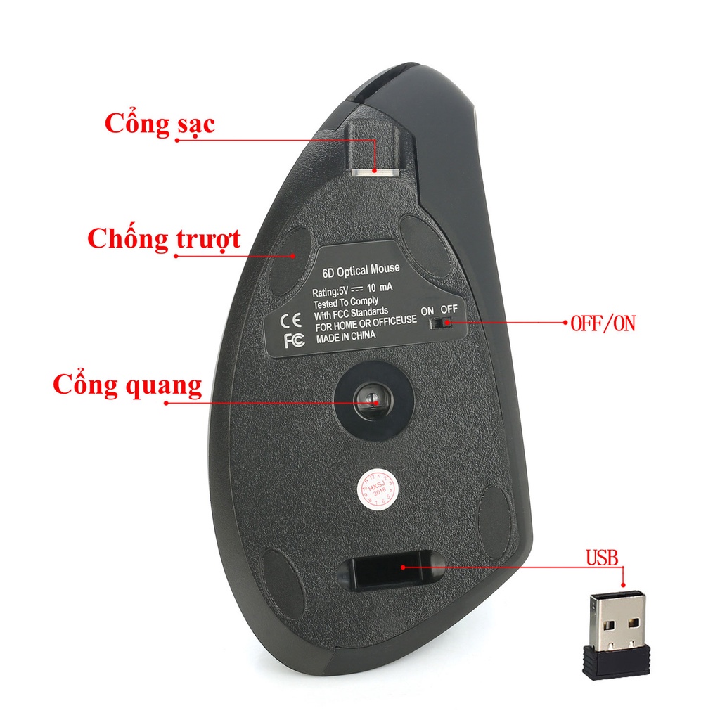 ✿ CÔNG NGHỆ TIẾT KIỆM PIN LỚN Chuột không dây KIỂU ĐỨNG HXSJ T22