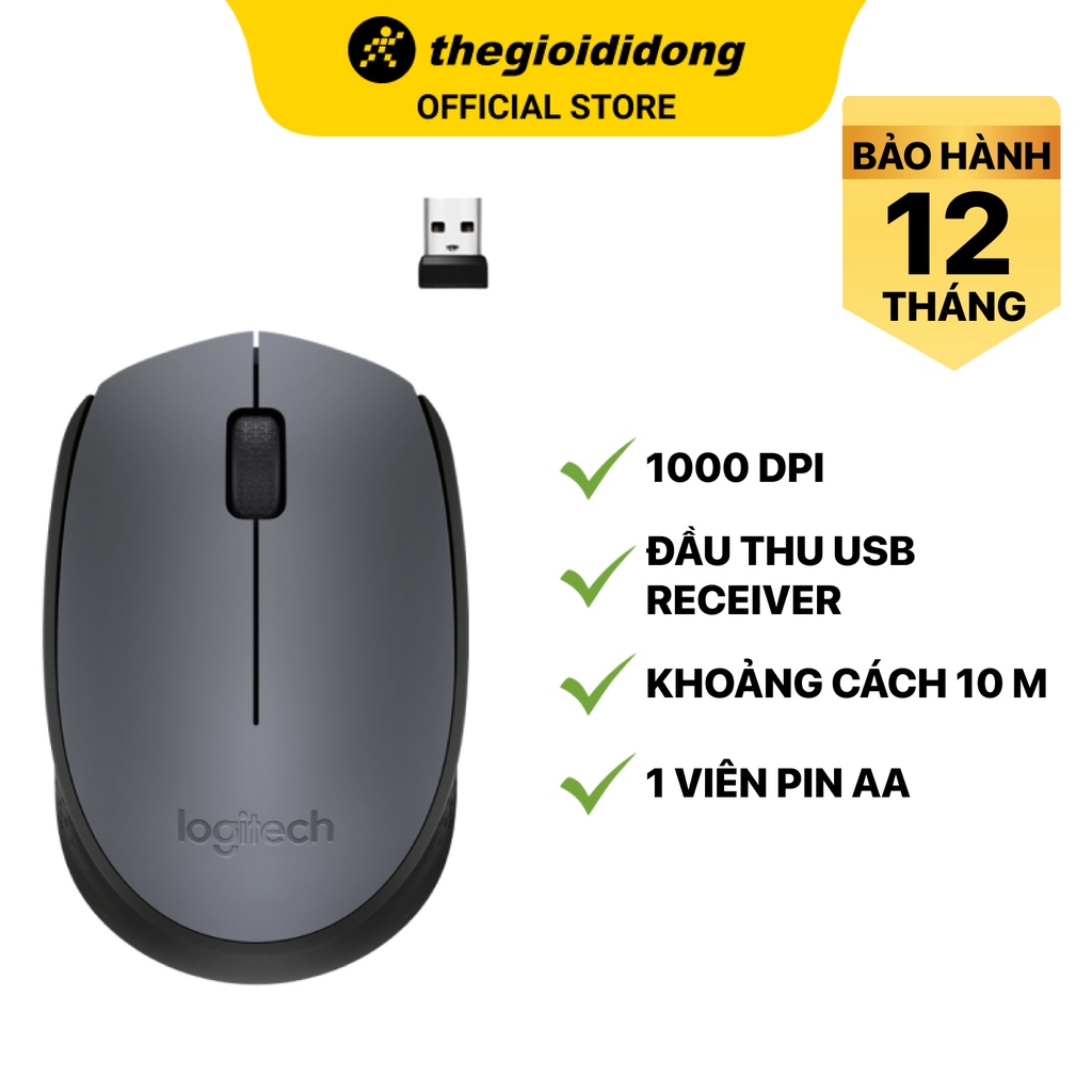Máy tính & Laptop > Chuột & Bàn Phím > Chuột Máy Tính || Chuột Không Dây Logitech M170 Đen 1000 DPI - Hàng chính hãng - BH 12 thángCòn hàng