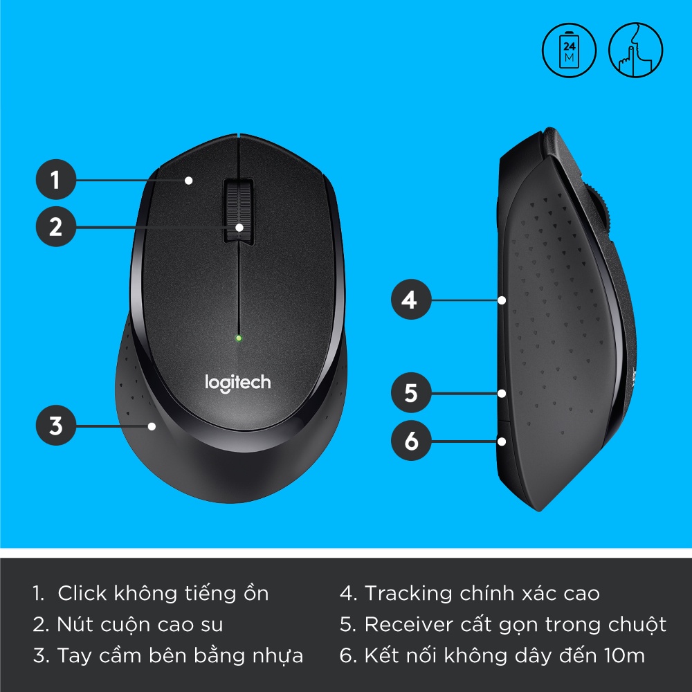 [Mã ELLOGIWL5 giảm 10% đơn 500K] Chuột không dây Logitech M330 Silent Plus - Giảm ồn, USB, thuận tay phải, PC/ Laptop