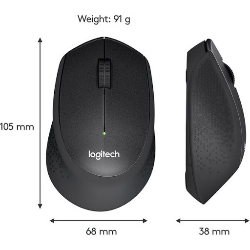 Chuột không dây Logitech Kiểu dáng vừa tay cầm người dùng, độ cao chuột vừa vặn thoải mái khi sử dụng.