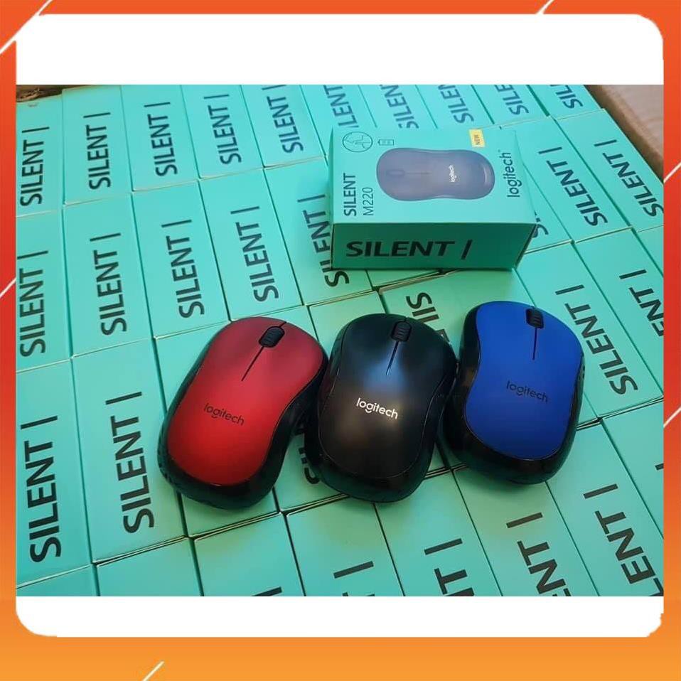 - Chuột máy tính không dây Logitech Silent M220 Xanh-Đen-Đỏ