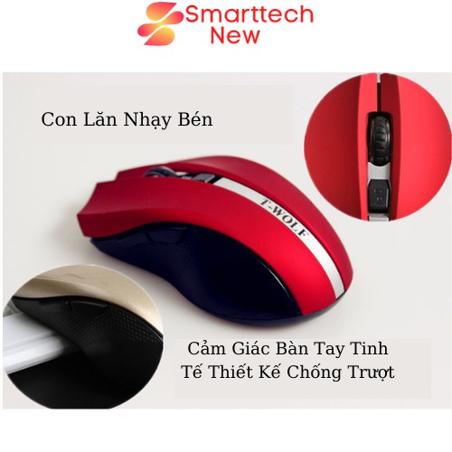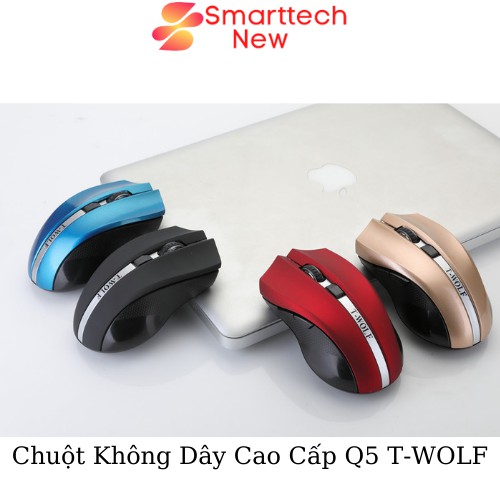 Chuột Không Dây Máy Tính, Chuột Bluetooth Q5 T-WOLF Kết Nối 2.4 GHZ 3 Màu Xám - Xanh - Đỏ 1200 DPI Cứng CápMô Tả Sản Phẩm
