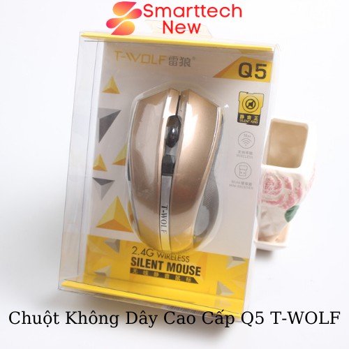 Chuột Không Dây Máy Tính, Chuột Bluetooth Q5 T-WOLF Kết Nối 2.4 GHZ 3 Màu Xám - Xanh - Đỏ 1200 DPI Cứng Cáp