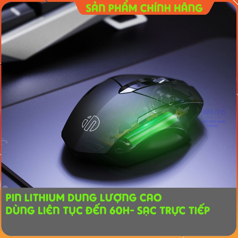 Chuột không dây pin sạc inphic PM6 - Chuột gaming không dây bluetooth cao cấp bấm siêu êm không cần thay pin