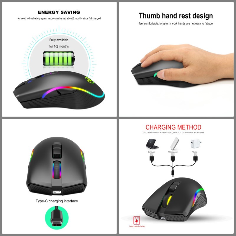 Chuột Không Dây Pin sạc T26 Gaming Mouse Type C