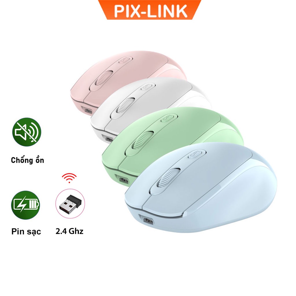 Chuột không dây PIX-LINK P100 wireless 2.4Ghz sạc pin, chống ồn, DPI1600 dùng cho máy tính, laptop, tivi-Hàng chính hãng