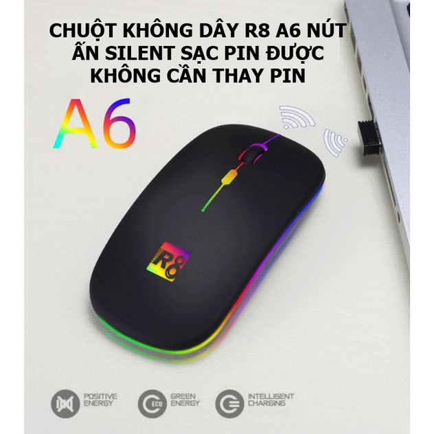 Chuột Không Dây R8 A6 - Chống Ồn Pin Sạc Được Không Cần Thay PIN